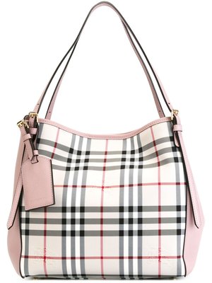 Pink, beige, black and red calf leather 'The Canter' in Horseferry check top from Burberry.