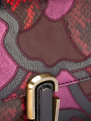 Red and multicolour calf leather 'J, Marc' shoulder bag from Marc Jacobs featuring a patchwork design, a snakeskin effect, a hanging tassel, gold-tone hardware, a gold-tone chain shoulder strap, a gold-tone Double Js plaque to the front, a foldover top with clasp closure, an internal zipped pocket and an internal slip pocket.